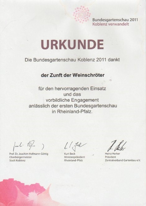 für die Weinschröter für ihr Engagement während der BUGA