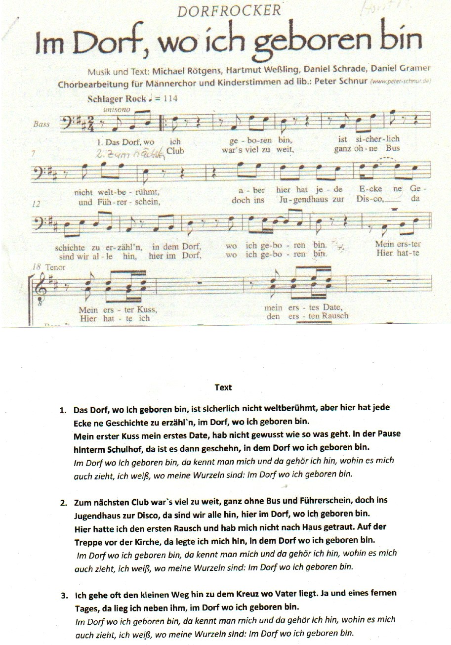 Notenblatt und Liedtext